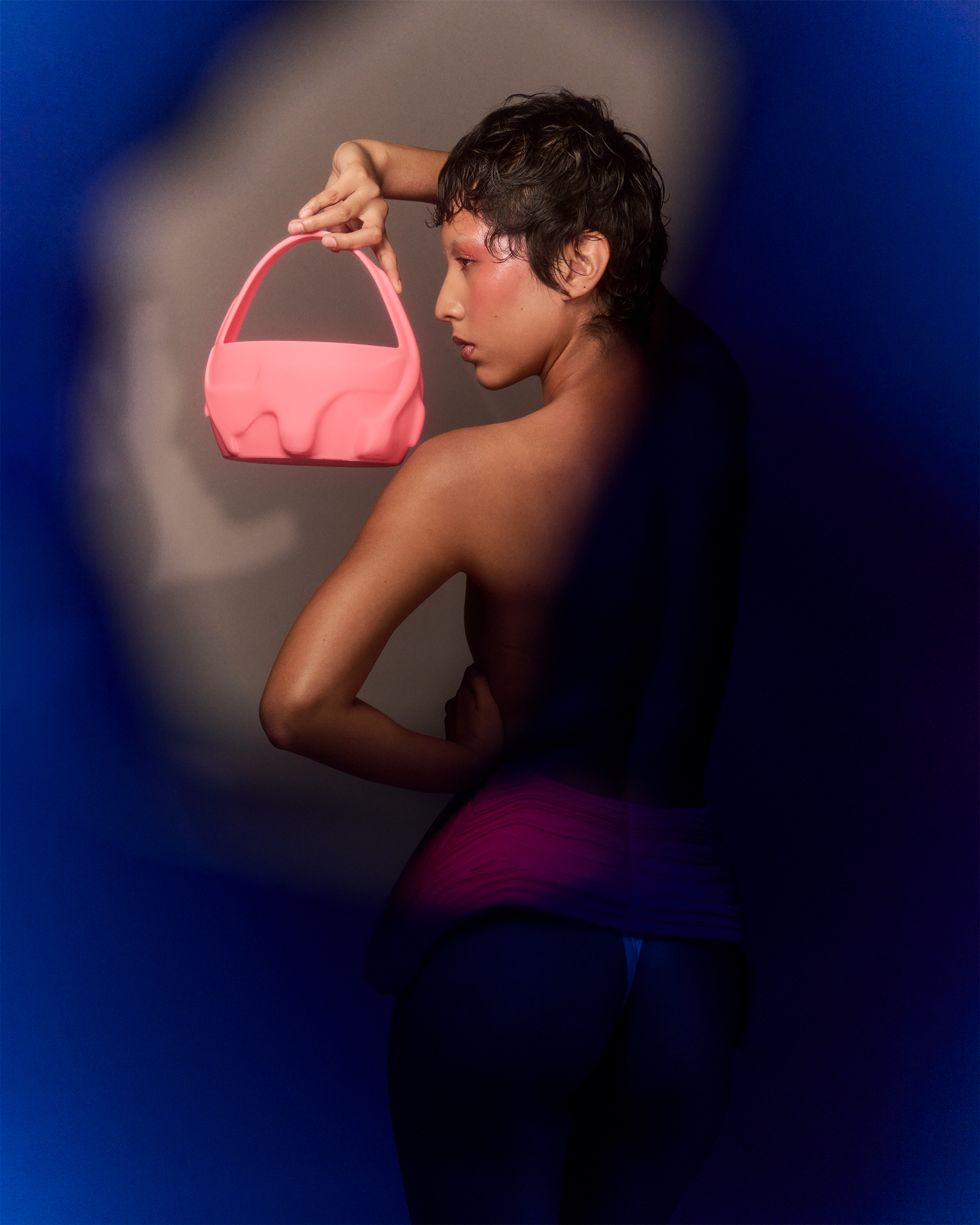 Diseñada con tecnología 3D, la LAVA BAG es ultraligera y resistente, fusionando innovación con moda de vanguardia. Su materialidad eco-friendly refuerza su compromiso con un diseño sostenible y consciente, sin dejar de lado la estética futurista y escultural que define cada pieza.